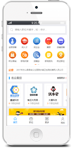 - 無需下載,沒有平臺、機型的限制,有觸屏手機就能上網(wǎng)找工作!機會不再稍縱即逝,它已在你輕盈的指尖上!